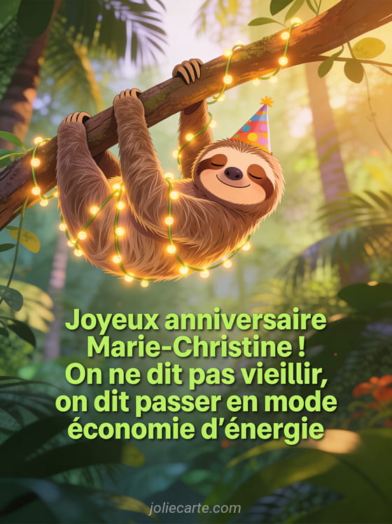 Télécharger le GIF animé joyeux anniversaire Marie-Christine ! On ne dit pas vieillir, on dit passer en mode économie d'énergie