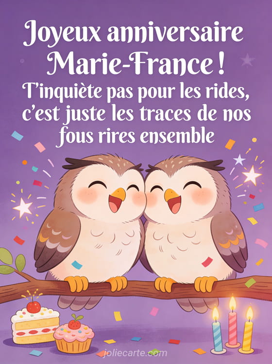 Télécharger le GIF animé joyeux anniversaire Marie-France ! T'inquiète pas pour les rides, c'est juste les traces de nos fous rires ensemble