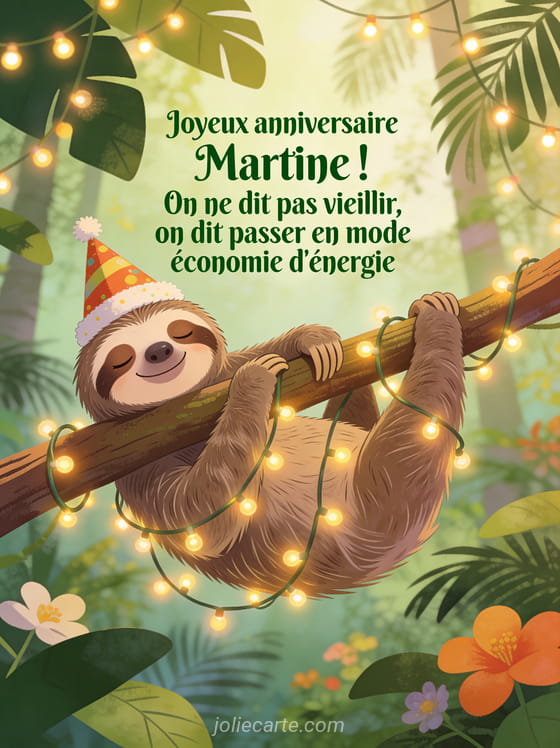 Télécharger le GIF animé joyeux anniversaire Martine ! On ne dit pas vieillir, on dit passer en mode économie d'énergie