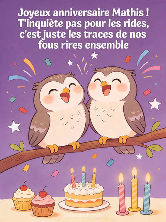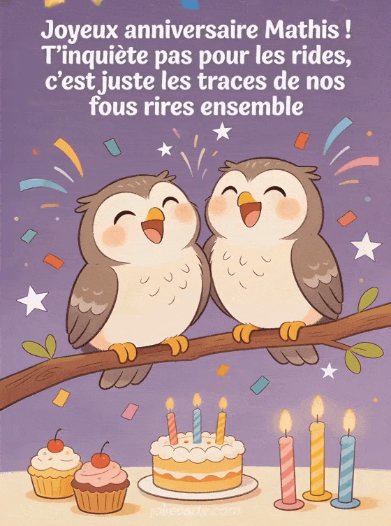 Télécharger le GIF animé joyeux anniversaire Mathis ! T'inquiète pas pour les rides, c'est juste les traces de nos fous rires ensemble