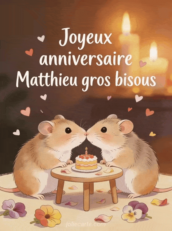 Télécharger le GIF animé joyeux anniversaire Matthieu gros bisous