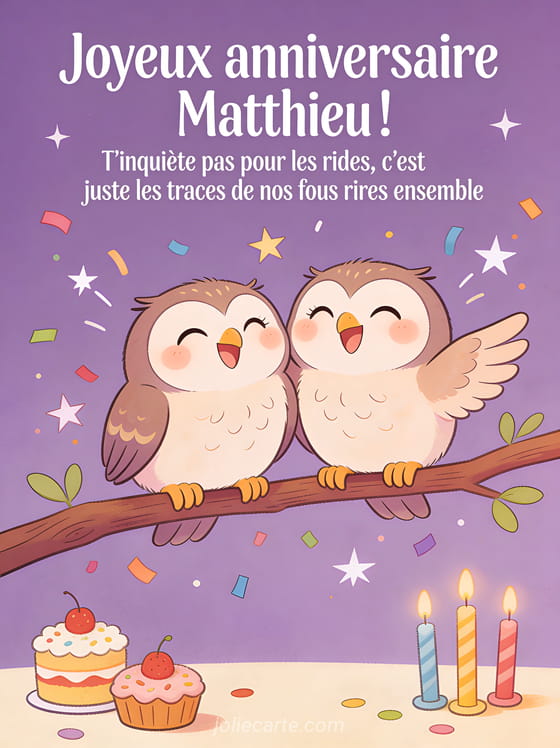 Télécharger l'image joyeux anniversaire Matthieu ! T'inquiète pas pour les rides, c'est juste les traces de nos fous rires ensemble