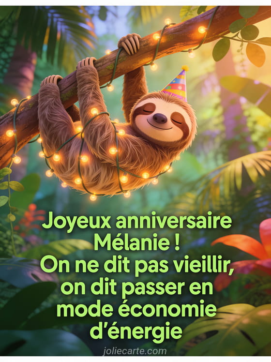 Télécharger l'image joyeux anniversaire Mélanie ! On ne dit pas vieillir, on dit passer en mode économie d'énergie