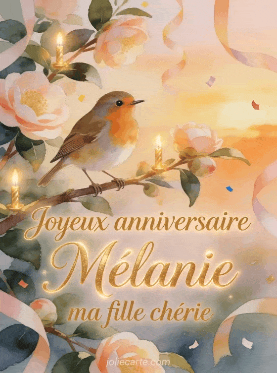 Bon anniversaire Mélanie gif · Bon anniversaire Mélanie carte · Bon anniversaire Mélanie carte gratuite · Bon anniversaire Mélanie jolie carte · Bon anniversaire Mélanie chat