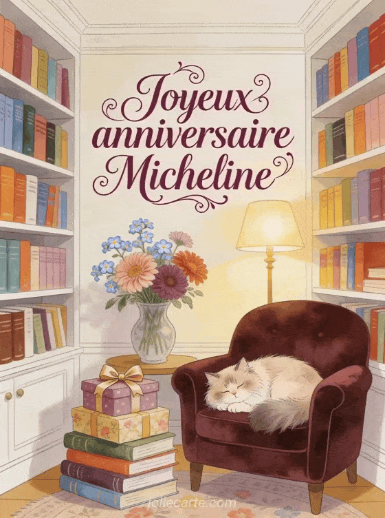 Bon anniversaire Micheline gros bisous · Bon anniversaire Micheline carte · Bon anniversaire Micheline gif anime · Bon anniversaire Micheline jolie carte · Bon anniversaire Micheline chat