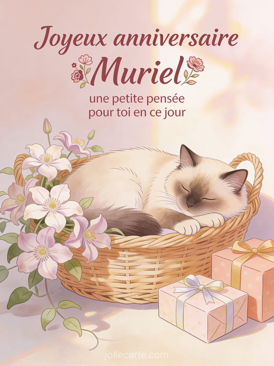 Bon anniversaire Muriel carte · Bon anniversaire Muriel chat · Bon anniversaire Muriel jolie carte · Bon anniversaire Muriel carte gratuite · Bon anniversaire Muriel mon amour