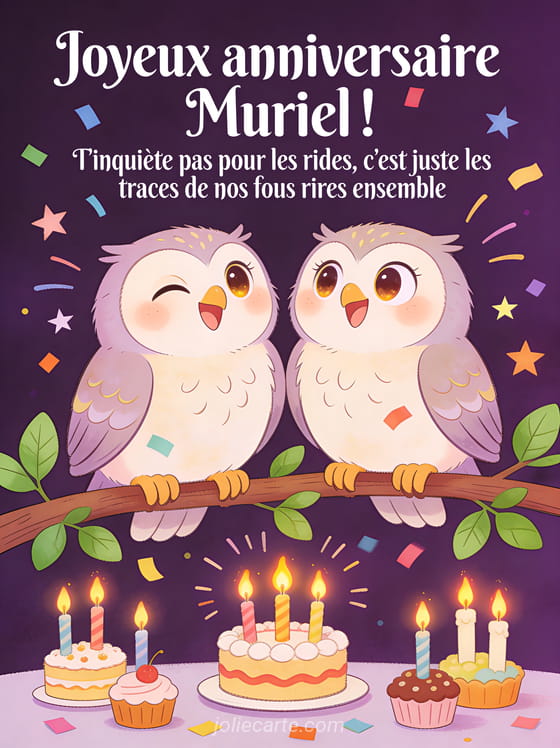 Télécharger le GIF animé joyeux anniversaire Muriel ! T'inquiète pas pour les rides, c'est juste les traces de nos fous rires ensemble