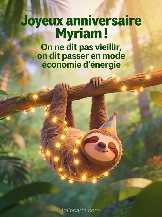 Télécharger l'image joyeux anniversaire Myriam ! On ne dit pas vieillir, on dit passer en mode économie d'énergie