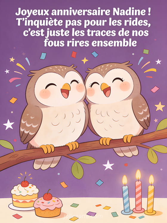 Télécharger l'image joyeux anniversaire Nadine ! T'inquiète pas pour les rides, c'est juste les traces de nos fous rires ensemble