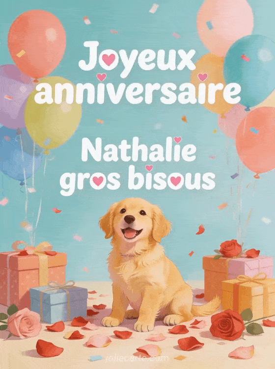 Bon anniversaire Nathalie ma fille · Bon anniversaire Nathalie bisous · Bon anniversaire Nathalie jolie carte · Bon anniversaire Nathalie mon amour · Bon anniversaire Nathalie chien