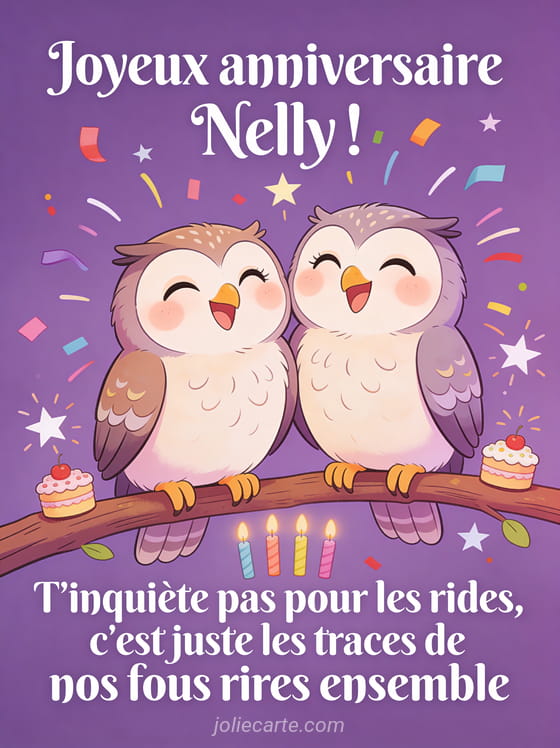 Télécharger l'image joyeux anniversaire Nelly ! T'inquiète pas pour les rides, c'est juste les traces de nos fous rires ensemble