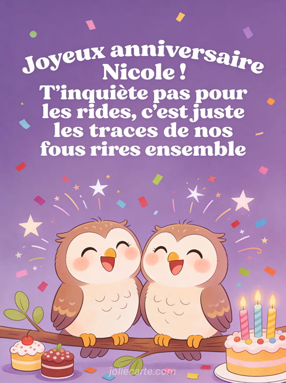 Télécharger l'image joyeux anniversaire Nicole ! T'inquiète pas pour les rides, c'est juste les traces de nos fous rires ensemble