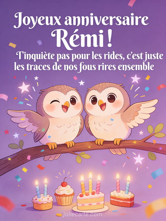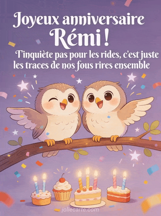 Télécharger le GIF animé joyeux anniversaire Rémi ! T'inquiète pas pour les rides, c'est juste les traces de nos fous rires ensemble
