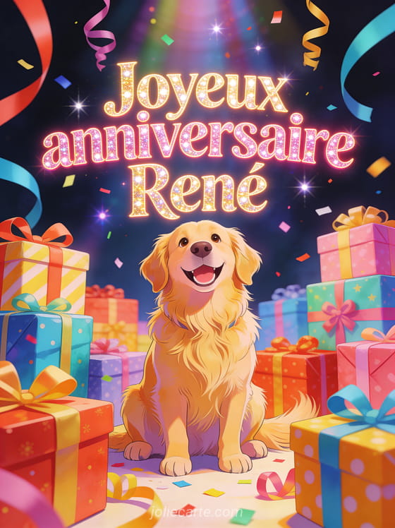 Bon anniversaire René chien · Bon anniversaire René humour · Bon anniversaire René rigolo · Bon anniversaire René fleurs · Bon anniversaire René champagne