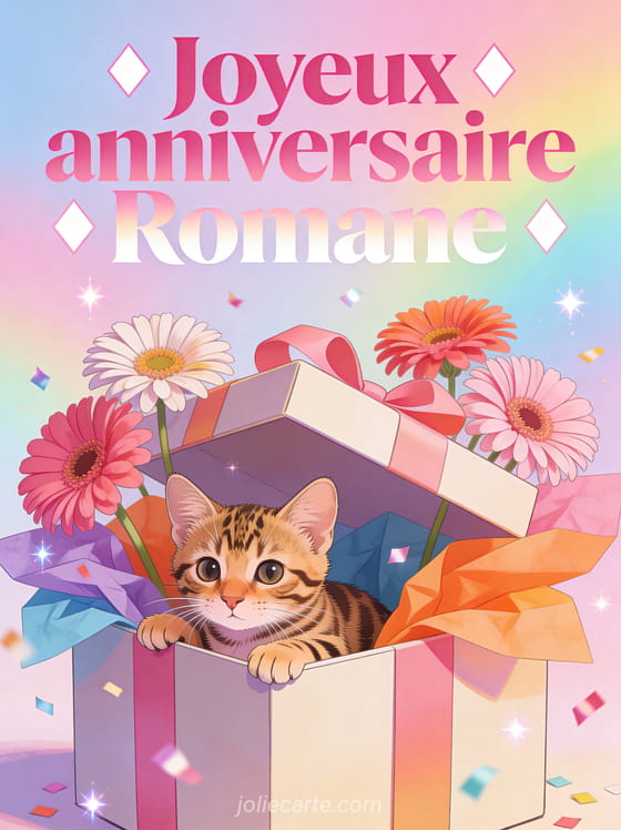 Bon anniversaire Romane gif anime · Bon anniversaire Romane femme · Bon anniversaire Romane gif · Bon anniversaire Romane ma fille · Bon anniversaire Romane chat
