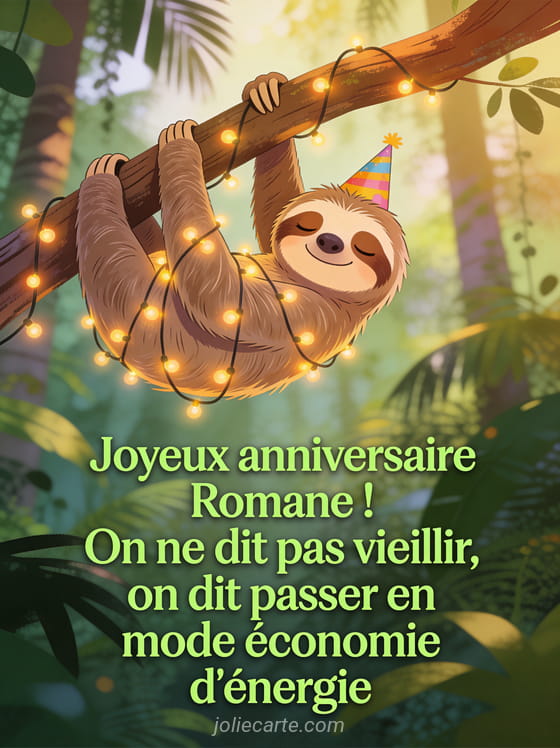 Télécharger l'image joyeux anniversaire Romane ! On ne dit pas vieillir, on dit passer en mode économie d'énergie