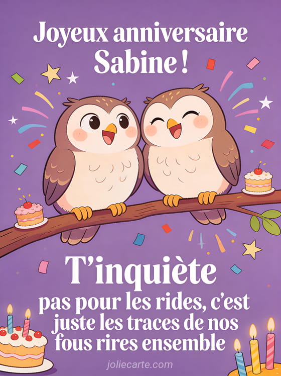 Télécharger l'image joyeux anniversaire Sabine ! T'inquiète pas pour les rides, c'est juste les traces de nos fous rires ensemble