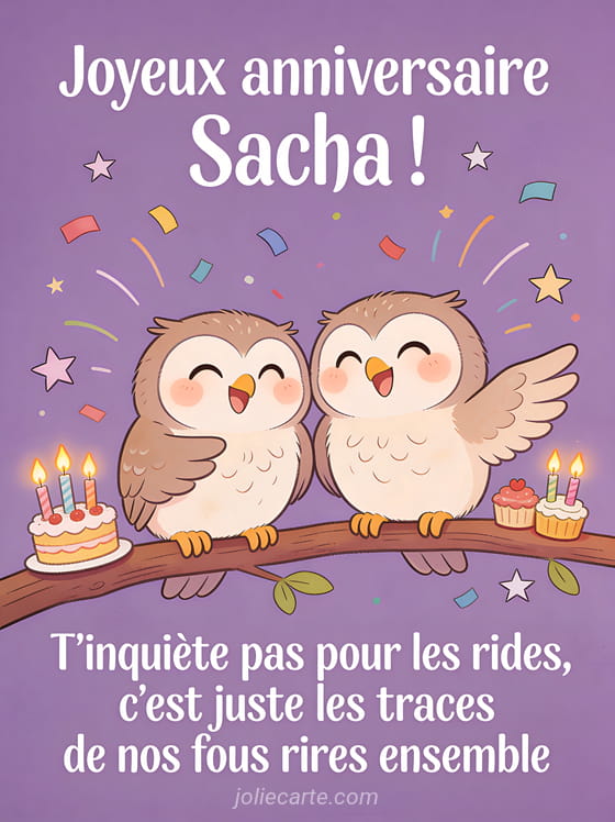 Télécharger l'image joyeux anniversaire Sacha ! T'inquiète pas pour les rides, c'est juste les traces de nos fous rires ensemble