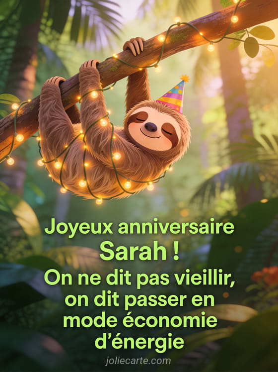 Télécharger l'image joyeux anniversaire Sarah ! On ne dit pas vieillir, on dit passer en mode économie d'énergie