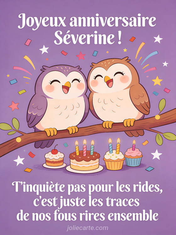 Télécharger l'image joyeux anniversaire Séverine ! T'inquiète pas pour les rides, c'est juste les traces de nos fous rires ensemble