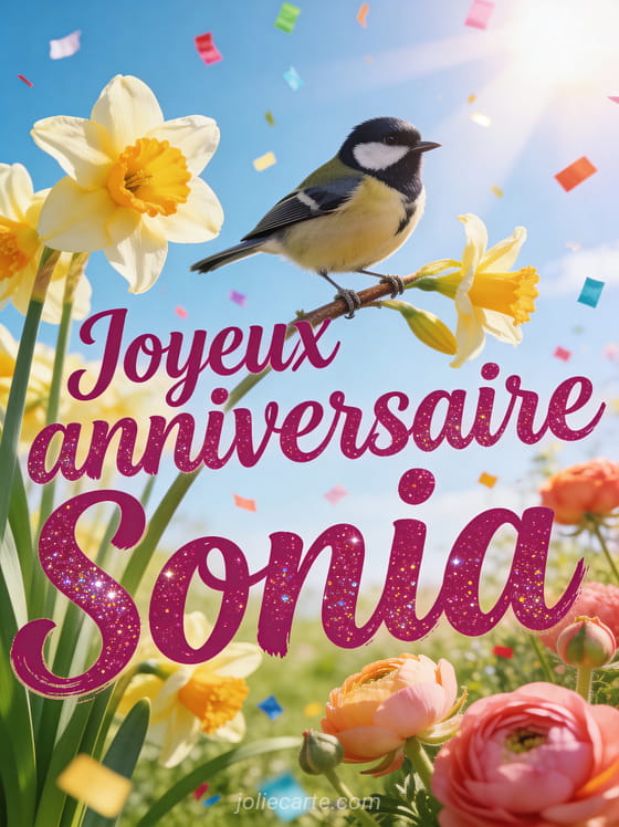 Bon anniversaire Sonia gif · Bon anniversaire Sonia jolie carte · Bon anniversaire Sonia rigolo · Bon anniversaire Sonia fleurs · Bon anniversaire Sonia champagne