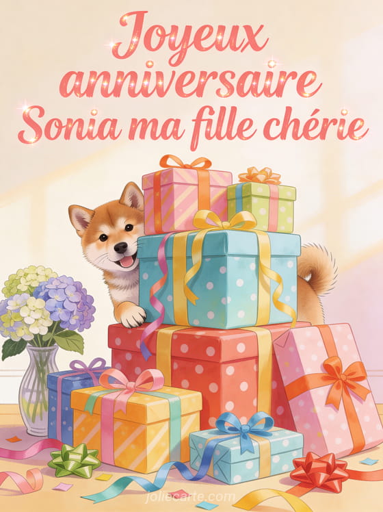 Bon anniversaire Sonia gros bisous · Bon anniversaire Sonia carte gratuite · Bon anniversaire Sonia chien · Bon anniversaire Sonia image · Bon anniversaire Sonia mon amour