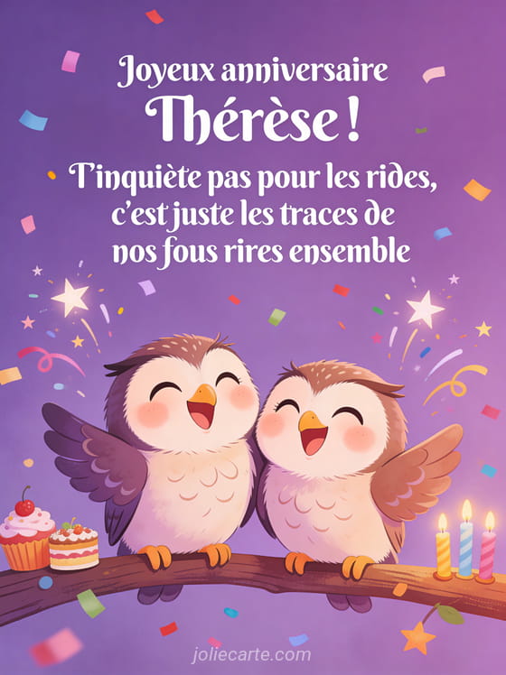 Télécharger l'image joyeux anniversaire Thérèse ! T'inquiète pas pour les rides, c'est juste les traces de nos fous rires ensemble