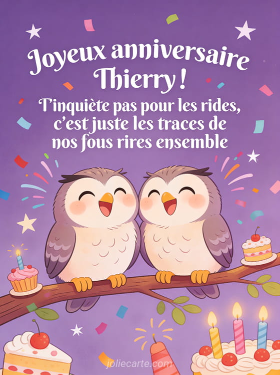 Télécharger l'image joyeux anniversaire Thierry ! T'inquiète pas pour les rides, c'est juste les traces de nos fous rires ensemble
