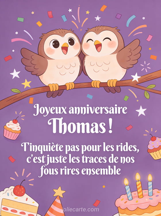 Télécharger l'image joyeux anniversaire Thomas ! T'inquiète pas pour les rides, c'est juste les traces de nos fous rires ensemble