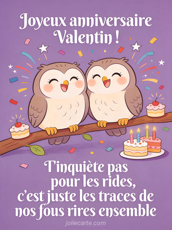Télécharger l'image joyeux anniversaire Valentin ! T'inquiète pas pour les rides, c'est juste les traces de nos fous rires ensemble