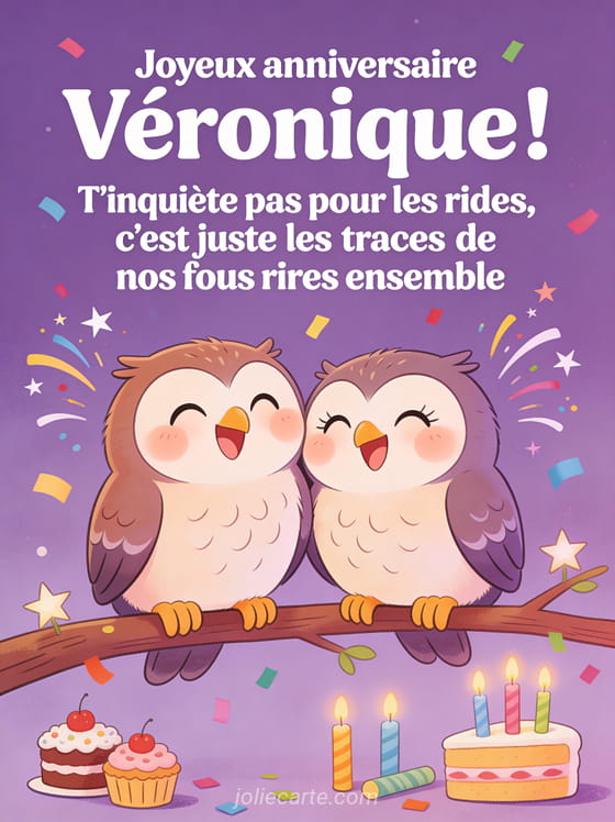 Télécharger l'image joyeux anniversaire Véronique ! T'inquiète pas pour les rides, c'est juste les traces de nos fous rires ensemble
