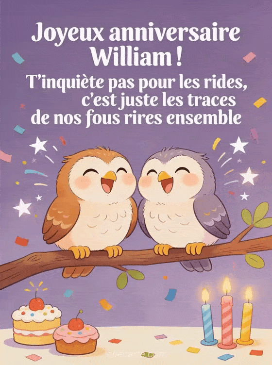 Télécharger le GIF animé joyeux anniversaire William ! T'inquiète pas pour les rides, c'est juste les traces de nos fous rires ensemble