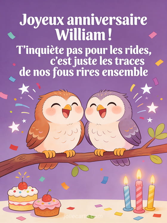 Télécharger l'image joyeux anniversaire William ! T'inquiète pas pour les rides, c'est juste les traces de nos fous rires ensemble
