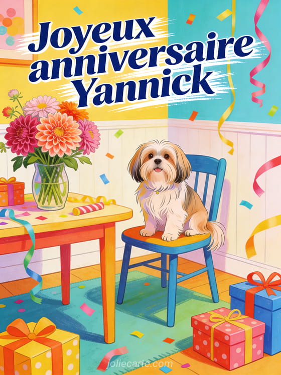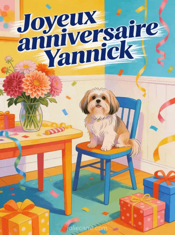 Bon anniversaire Yannick gif anime · Bon anniversaire Yannick jolie carte · Bon anniversaire Yannick gros bisous · Bon anniversaire Yannick chien · Bon anniversaire Yannick bisous