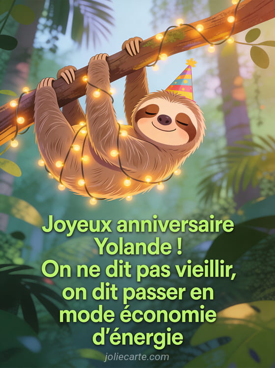 Télécharger le GIF animé joyeux anniversaire Yolande ! On ne dit pas vieillir, on dit passer en mode économie d'énergie