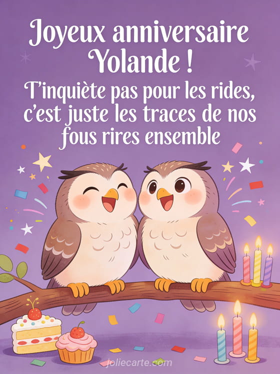 Télécharger l'image joyeux anniversaire Yolande ! T'inquiète pas pour les rides, c'est juste les traces de nos fous rires ensemble