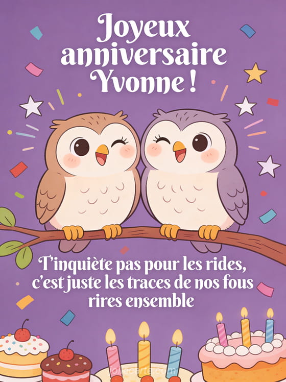 Télécharger l'image joyeux anniversaire Yvonne ! T'inquiète pas pour les rides, c'est juste les traces de nos fous rires ensemble