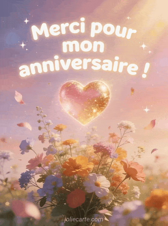 Dites merci pour votre anniversaire avec un gif animé lumineux et féerique qui exprime toute votre gratitude. Pour d'autres idées, découvrez un message de remerciement anniversaire drÎle, un texte remerciement anniversaire enfant ou une carte remerciement anniversaire 50 ans.