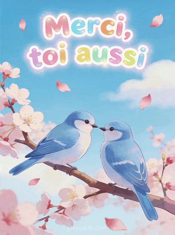 Répondez avec douceur grùce à ce gif animé merci toi aussi plein de tendresse printaniÚre. Découvrez aussi une carte de remerciement à envoyer, des images merci de tout mon coeur ou un gif merci de votre attention.