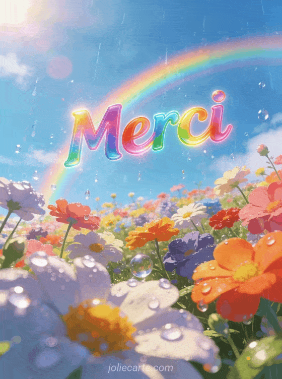 Partagez cette image avec le mot merci aux couleurs joyeuses de l'arc-en-ciel. Découvrez aussi une belle image pour dire merci, une image merci pour votre attention bleue ou une image de chat merci.