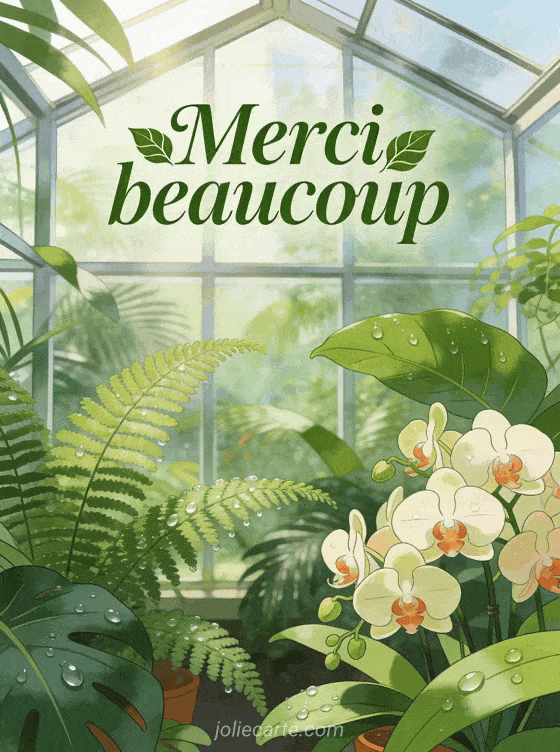 Envoyez un merci beaucoup avec cette image fraßche et botanique pleine de verdure. Pour d'autres remerciements, découvrez une image merci pour tout ce que tu as fait, une image d'accord merci ou une cybercarte gratuite merci.