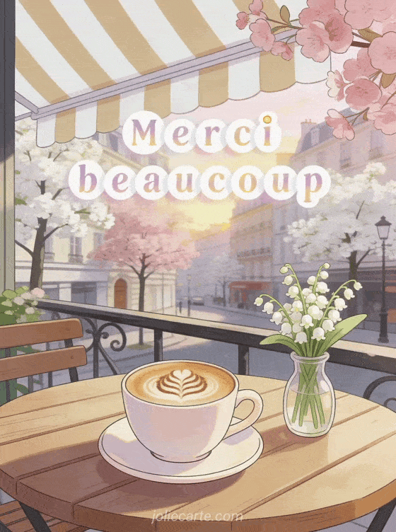 Dites merci beaucoup avec charme grâce à cette image à l'ambiance parisienne et printanière. Découvrez aussi un merci animé gratuit, une image merci pour l'acceptation ou une image merci attention.