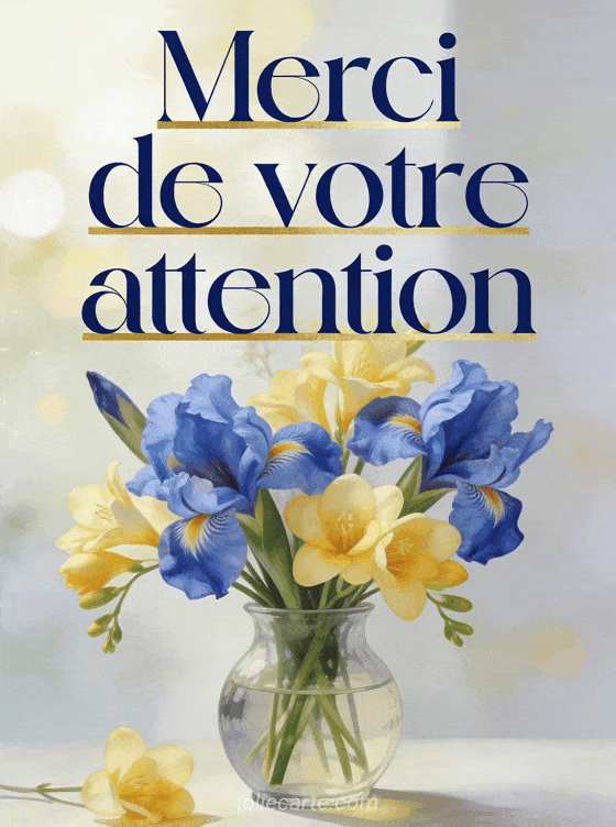 Concluez avec élégance en partageant cette image merci de votre attention. Pour d'autres façons de remercier, découvrez un message de remerciement, un message type de remerciement ou un modÚle de carte de remerciement.