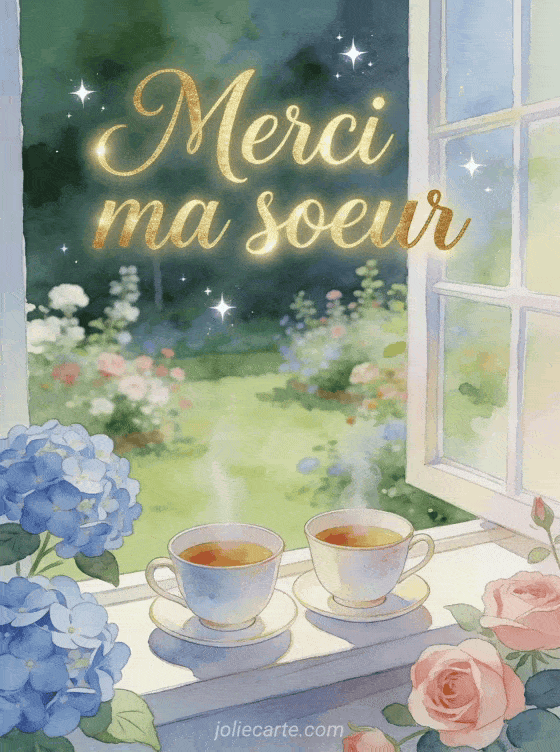 Dites merci ma soeur avec cette image pleine de douceur, pour célébrer cette complicité unique entre soeurs. Découvrez aussi une image merci soeurette, un merci les filles ou un merci papa merci maman.
