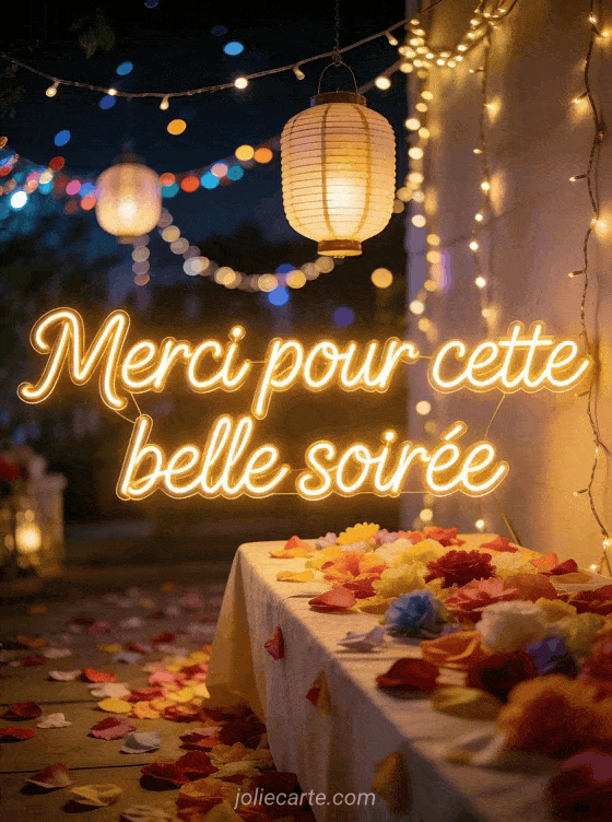 Envoyez cette image « Merci pour cette belle soirée » pour remercier ceux qui ont rendu votre anniversaire mémorable. Prolongez la magie avec un merci anniversaire, un remerciement festif ou un mot de gratitude.