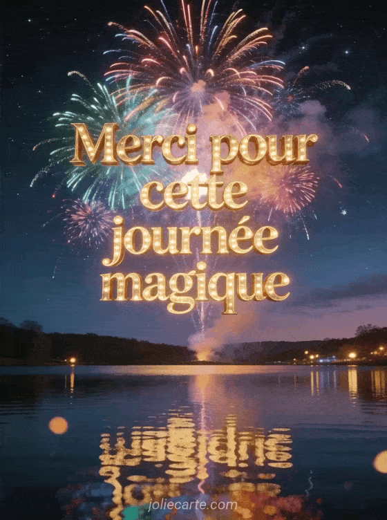 Exprimez toute votre gratitude avec cette image « Merci pour cette journĂ©e magique », illuminĂ©e par un feu dâartifice sous les Ă©toiles. Prolongez lâĂ©motion avec un remerciement sincĂšre, un merci anniversaire ou une carte de gratitude.