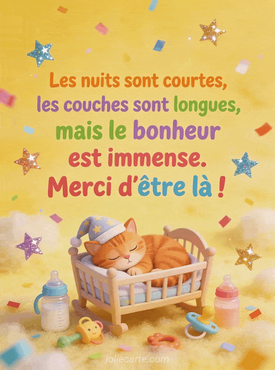 Les nuits sont courtes, les couches sont longues, mais le bonheur est immense. Merci dâĂȘtre lĂ ! un texte de remerciement naissance plein dâhumour