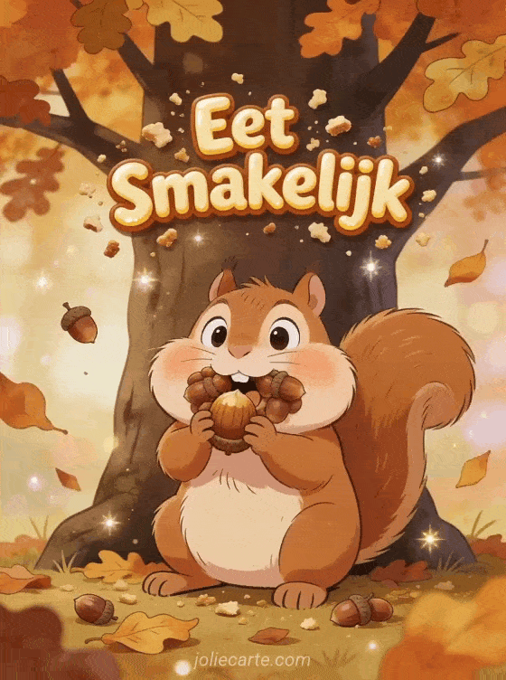 Laat iemand lachen tijdens het eten met deze grappige eekhoornkaart. Ontdek ook een gif eet smakelijk of geanimeerde afbeeldingen eet smakelijk.