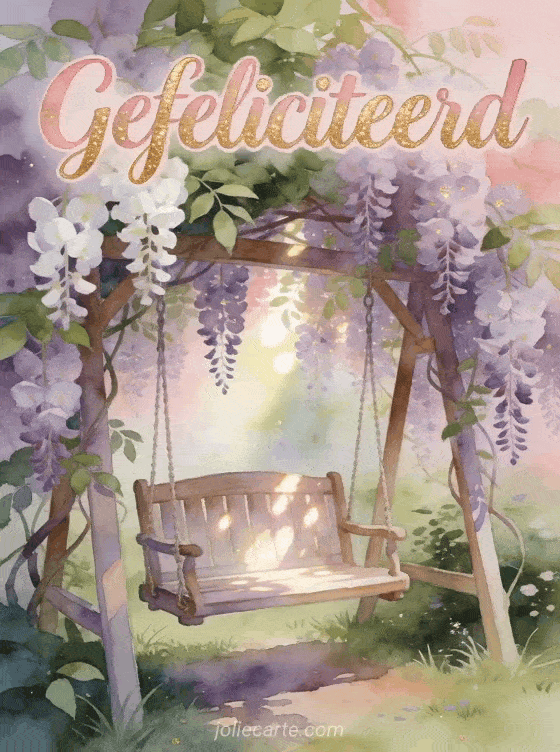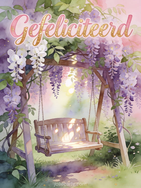 Deel deze dromerige kaart met een geheime tuin, schommel tussen blauwe regen en sprookjesachtige aquarelsfeer. Bekijk ook gif humor verjaardag vrouw, gefeliciteerd vrouw tekst en dromedaris verjaardagskaart vrouw.