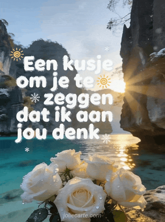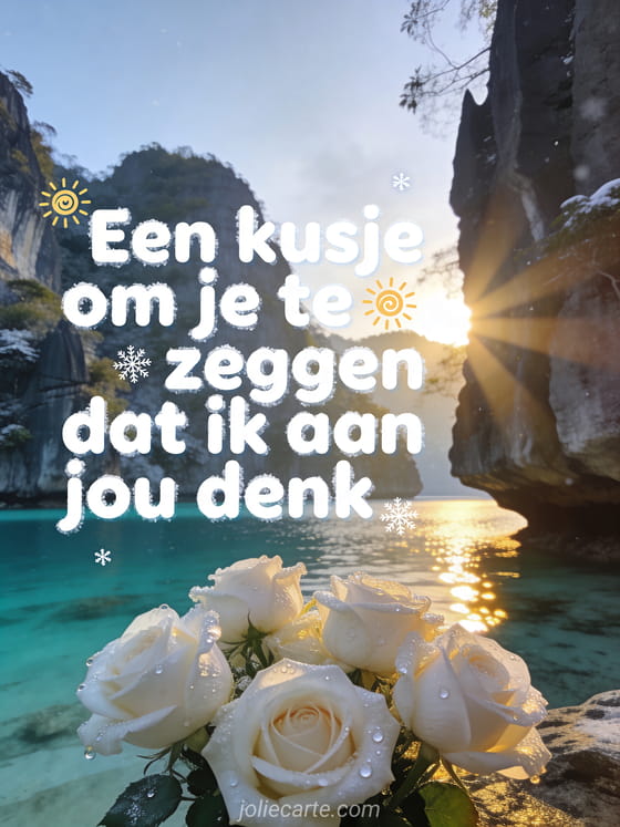 Verras iemand met deze prachtige kaart met verborgen meren van Coron in Palawan en een boeket witte rozen in winterochtendlicht. Ontdek ook een afbeelding ik hou van je ik denk aan jou of een liefdebericht ik denk aan jou mijn schat.